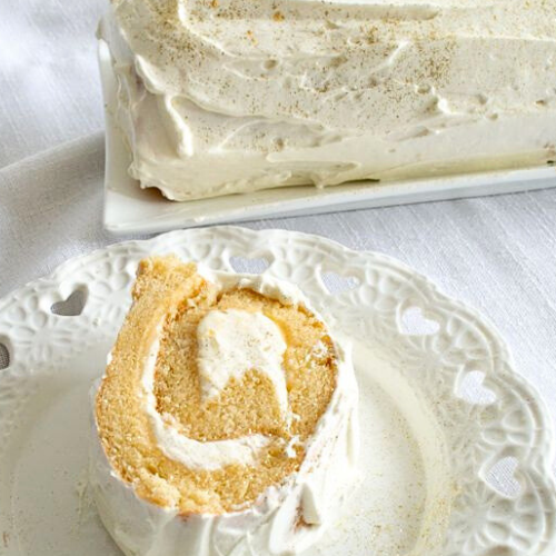 - Cuando aún esté caliente, pero no nos quememos, enrollamos el bizcocho sobre si mismo, para que coja la forma mientras enfría. Si tenemos papel de hornear sobrante por los laterales, enrollamos sobre si mismo, para que sujeten el papel con la forma cilíndrica, si el papel de hornear anda justo, podemos con un trapo de cocina enrollarlo y que haga de sujeción. Dejamos que enfríe completamente.